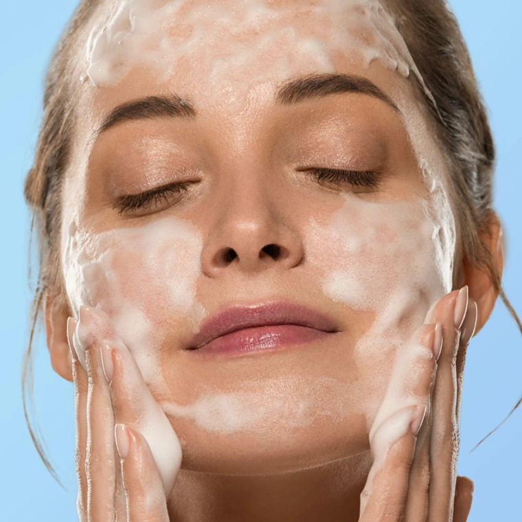 диаметре) влажными ладонями и вспеньте теплой либо горячей водой. Равномерно нанесите пенку на кожу лица, затем тщательно смойте водой.