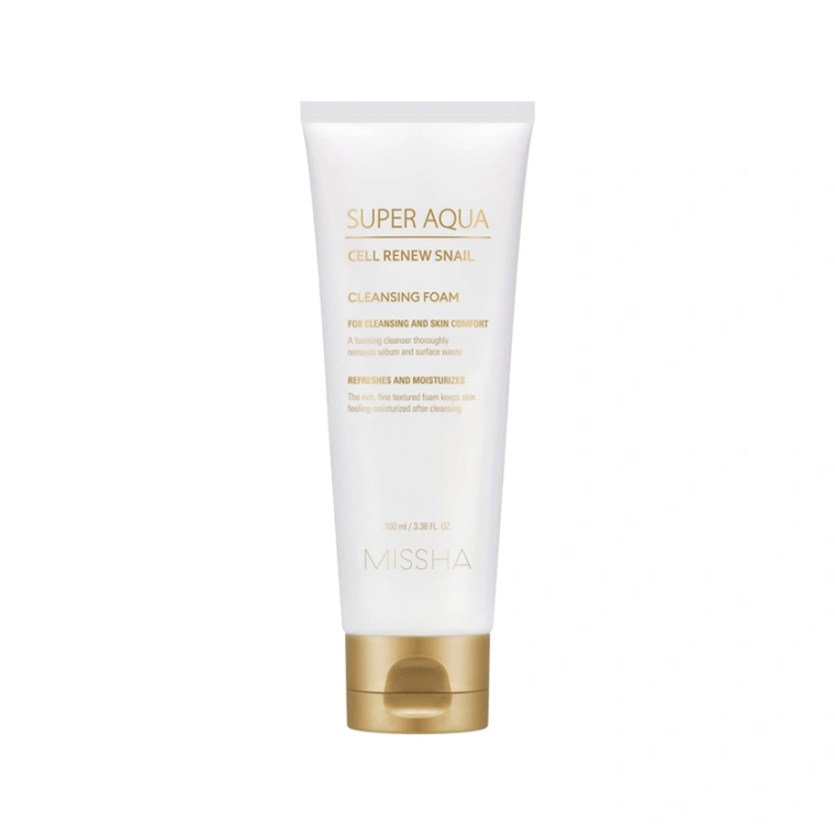 Нежная пенка для умывания MISSHA Super Aqua Renew – деликатное средство для очищения, умывания и увлажнения кожи лица. При контакте с водой превращается в роскошную пышную пену с множеством мельчайших пузырьков, которые эффективно и мягко удаляют излишки кожного себума и загрязнения с кожи. Благодаря ухаживающим свойствам основного действующего компонента – муцила улитки – пенка Missha Super Aqua Renew одинаково хорошо подходит для очищения и ухода за любым типом кожи, в том числе за сухой и повреждённой, за проблемной и жирной кожей, за уставшей и возрастной. Секреция улитки продлевает молодость кожи, разглаживает мелкие морщинки, способствует синтезу коллагена и эластина, защищает от воздействия внешних вредных факторов окружающей среды. Улиточный муцил ускоряет регенерацию клеток, смягчает кожу и устраняет воспаления и шелушения. Второй активный компонент пенки экстракт семян баобаба превосходно реанимирует раздражённую кожу, восстанавливает водный баланс, предотвращает появление новых морщин и защищает кожу от УФ-излучения. Комплекс увлажняющих компонентов, витаминов и антиоксидантов в составе улиточного секрета и экстракта баобаба напитывает, омолаживает и насыщает кожу удивительной жизненной силой. А природная энергия глубоководной морской воды поддерживает способность кожи к самостоятельному увлажнению. После умывания пенкой MISSHA Super Aqua Renew Ваша кожа сохранит комфортный уровень увлажнённости и будет свободно «дышать» без ощущения липкой плёнки на лице. Она идеально подготовлена для нанесения сыворотки, праймера и питательного крема из ассортимента MISSHA.