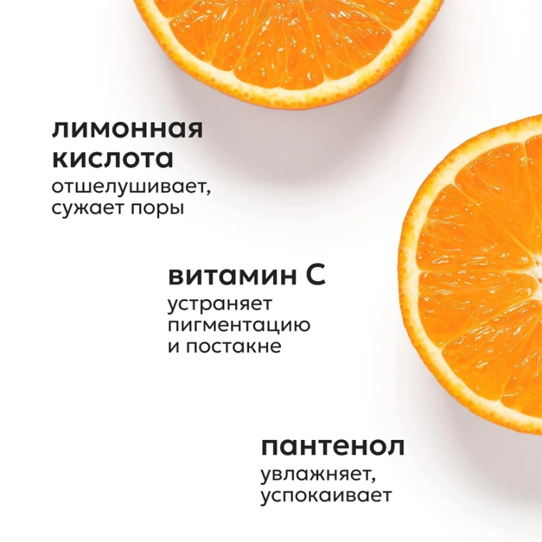 Пенка для умывания бережно очищает кожу от загрязнений и остатков макияжа. Витамин С увлажняет, нормализует гидролипидный баланс, выравнивает тон кожи, устраняет следы постакне, снимает воспаления и раздражения. Лимонная кислота отшелушивает ороговевшие клетки кожи, сужает поры, тонизирует, делает кожу матовой. Пантенол прекрасно увлажняет кожу на этапе очищения, восстанавливает нормальный ph дермы и бережно ухаживает.
