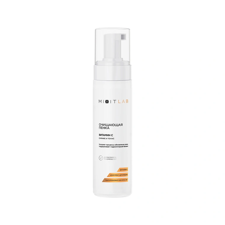 кожи лица и шеи. Помассировать 1-2 минуты, затем тщательно смыть водой. Использовать пенку для умывания утром и вечером. Эффективнее с другими средствами MIXIT LAB Vitamin C.