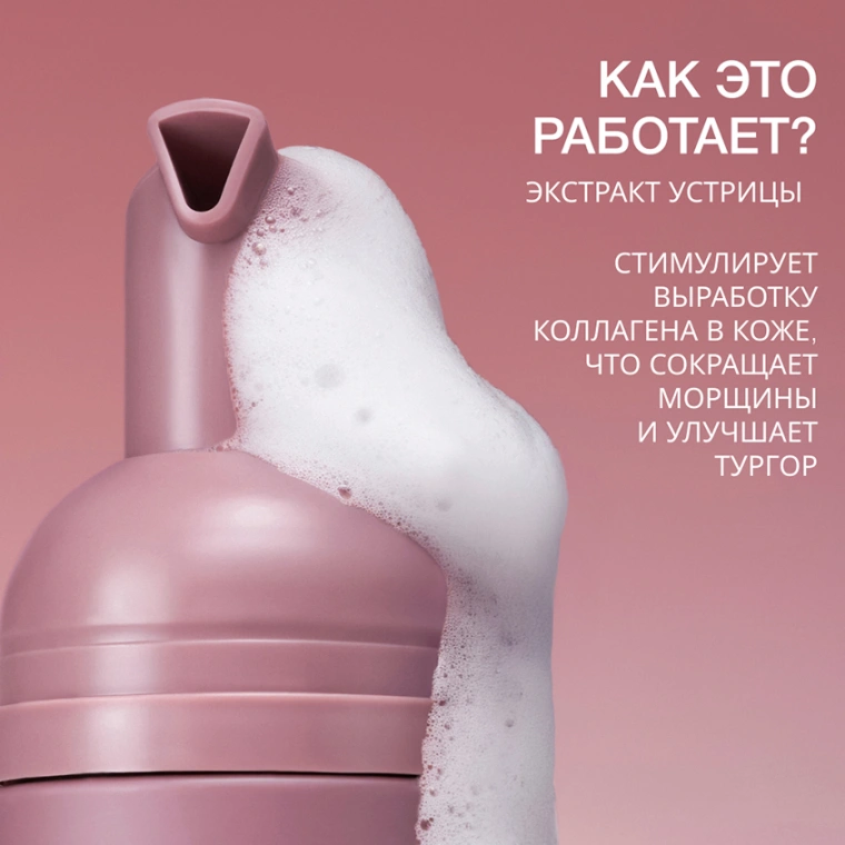 Экстракт устрицы стимулирует выработку коллагена, способствуя уменьшению морщин и повышению упругости кожи. Фруктоолигосахариды, действующие как пребиотик, поддерживают здоровый микробиом, укрепляют кожный барьер, уменьшают воспаления и повышают уровень увлажнённости.