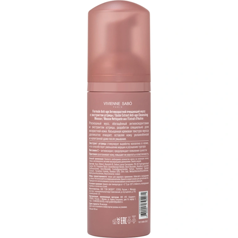 Антивозрастной очищающий мусс OYSTER EXTRACT ANTI-AGE CLEANSING MOUSSE от VIVIENNE SABÓ бережно очищает кожу и одновременно обеспечивает антивозрастной уход. Формула с антиоксидантами и экстрактом устрицы разработана специально для потребностей возрастной кожи.