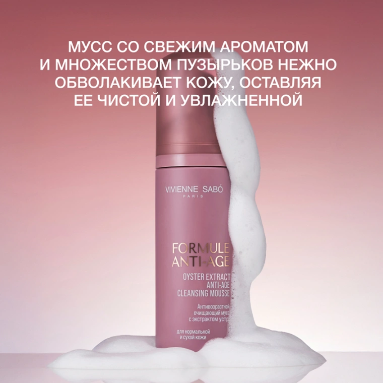 Мусс для умывания `VIVIENNE SABO` FORMULE ANTI-AGE очищающий с экстрактом устрицы (для нормальной и сухой кожи) 150 мл