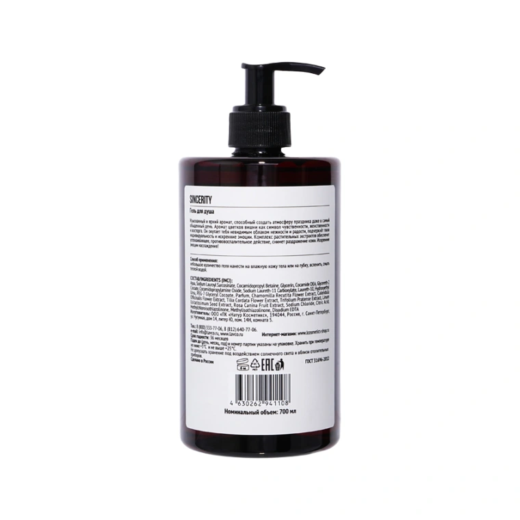 Гель для душа Sincerity – идеальный выбор для тех, кто ценит утончённость и искренние эмоции в каждом моменте.