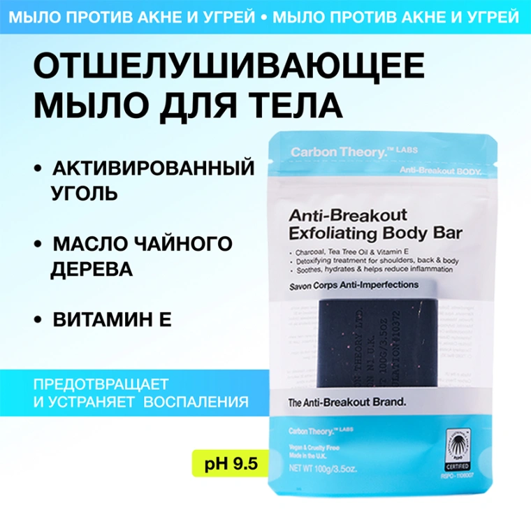 Дерматологически доказано, что наше отшелушивающее мыло Anti-Breakout Exfoliating Body Bar удаляет омертвевшие клетки кожи и очищает кожу от воспалений на плечах, спине и теле.