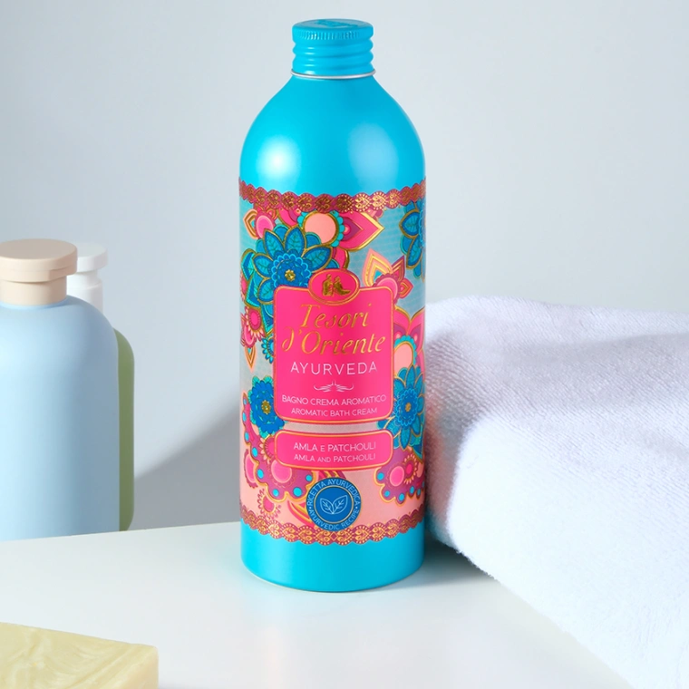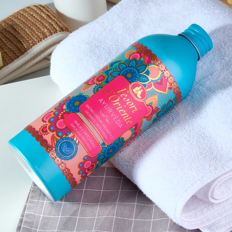 Tesori d’Oriente парфюмерный гель для душа АЮРВЕДА масло амлы и пачули / OLIO DI AMLA E PATCHOULI 500мл приглашает Вас окунуться в мир баланса и гармонии. Уникальная разработка итальянских парфюмеров создает гель для душа с ярким ароматом, обладающим хорошей стойкостью до 3 часов и уходовыми свойствами лосьона для тела.