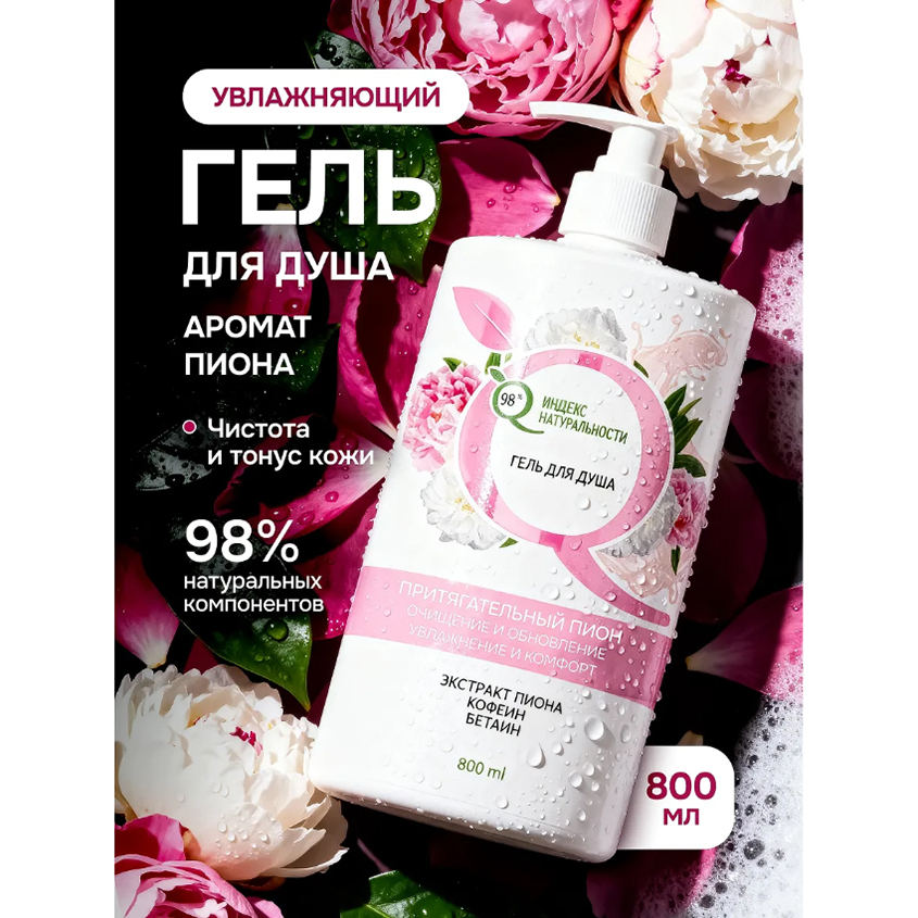 Благодаря экстракту пиона, бетаину и кофеину, гель не только мягко очищает, но и обеспечивает интенсивное увлажнение и гладкость.