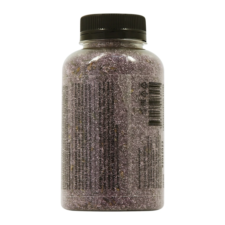 морская соль; сода; растительные сливки; оливковое масло; миндальное масло; касторовое масло; масло авокадо; цветки лаванды; эфирное масло лаванды; пищевые красители (CI 14720, CI 16255, CI 42090)