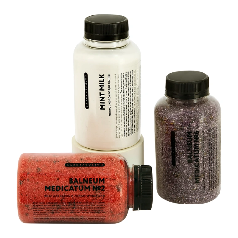 настояться 5 минут, затем разбавьте воду до комфортной температуры. Баночки хватает на 2-4 применения. Будьте осторожны! После использования микса поверхность ванны может быть скользкой.