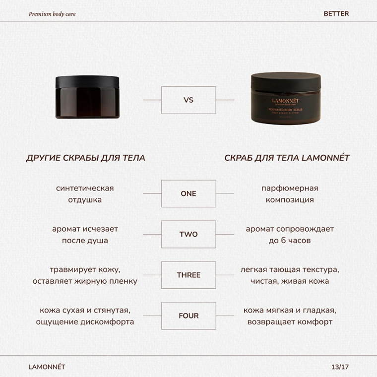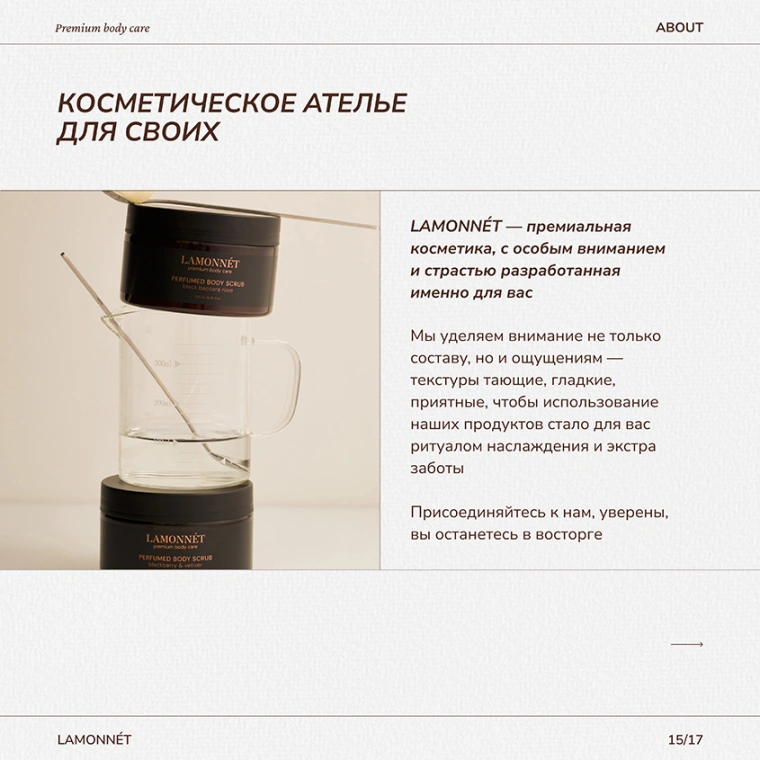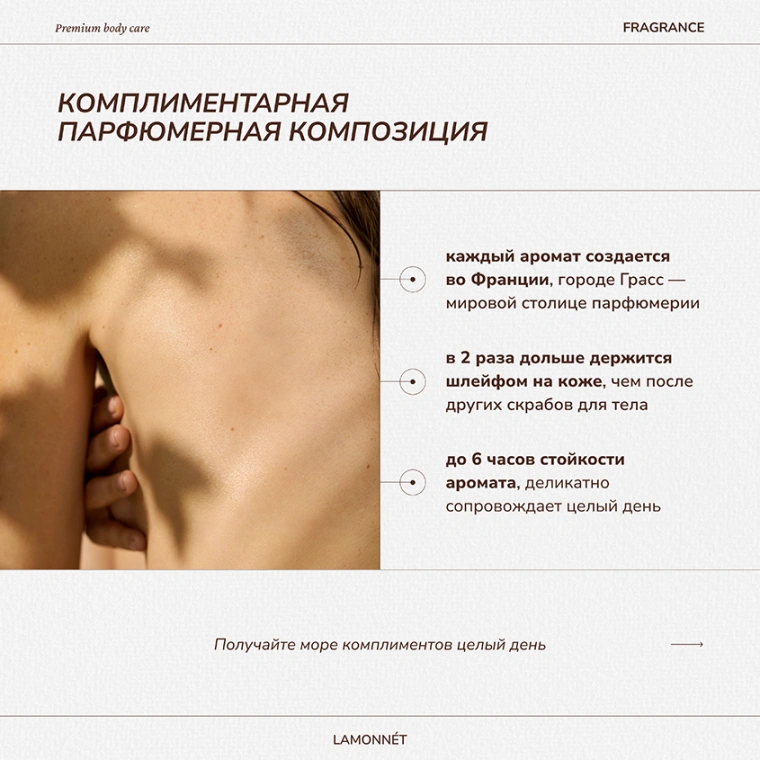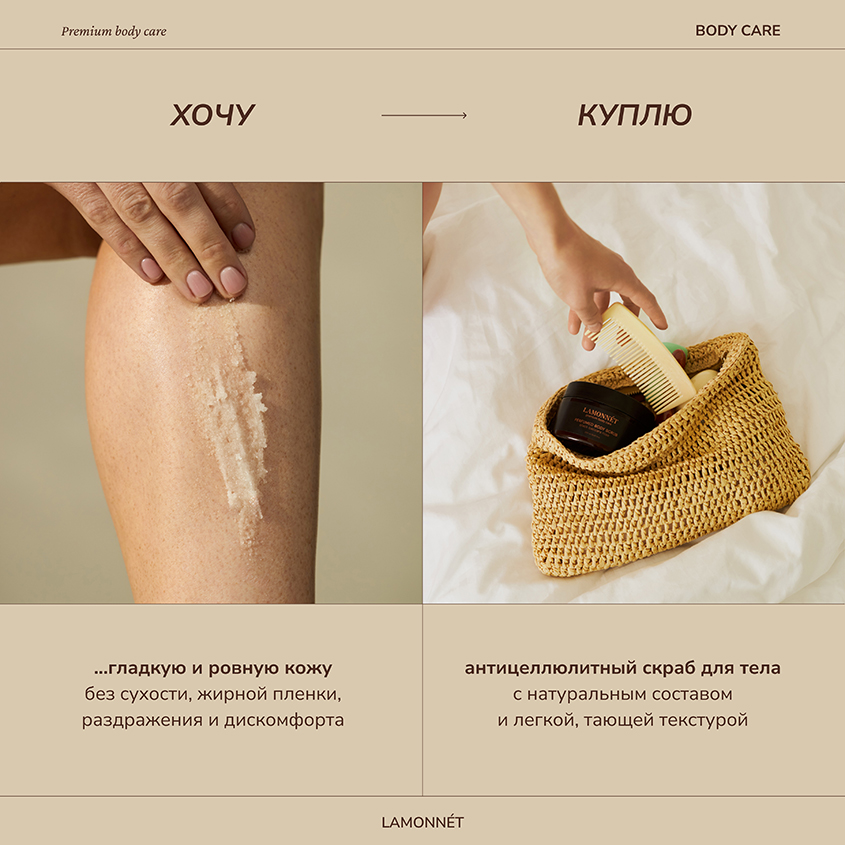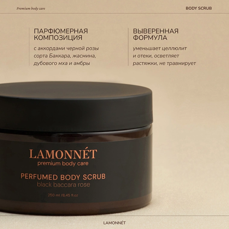 Скраб для тела LAMONNÉT с ароматом премиального парфюма black baccara rose и натуральными маслами — это авторский продукт, с особым вниманием и страстью разработанный именно для вас.