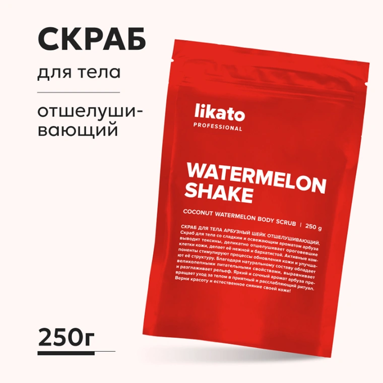 Скраб для тела со сладким и освежающим ароматом арбуза выводит токсины, деликатно отшелушивает ороговевшие клетки кожи, делает её нежной и бархатистой. Морская соль и абрикосовые косточки выравнивают и разглаживают микрорельеф кожи, активизируют кровообращение и лимфоток, устраняют загрязнения и излишки себума. Кокосовое масло и миндальное масло интенсивно питают и смягчают, восстанавливают уровень влаги в клетках, защищают от сухости и шелушения, придают гладкость, повышают упругость и эластичность. Экстракты мелиссы, чабреца и ромашки обладают тонизирующим и успокаивающим эффектом, усиливают микроциркуляцию и обмен веществ в клетках.