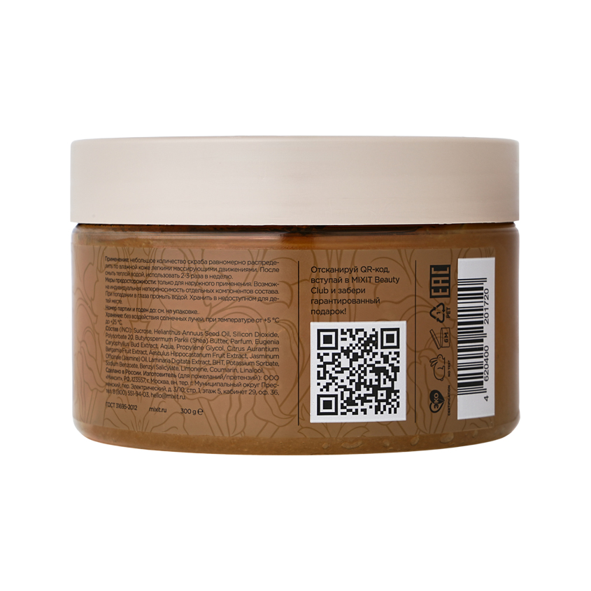 "Скраб превращает церемонию красоты в источник удовольствия и восполнения сил. Мельчайшие частички эффективно массируют кожу, отшелушивая ороговевшие клетки.