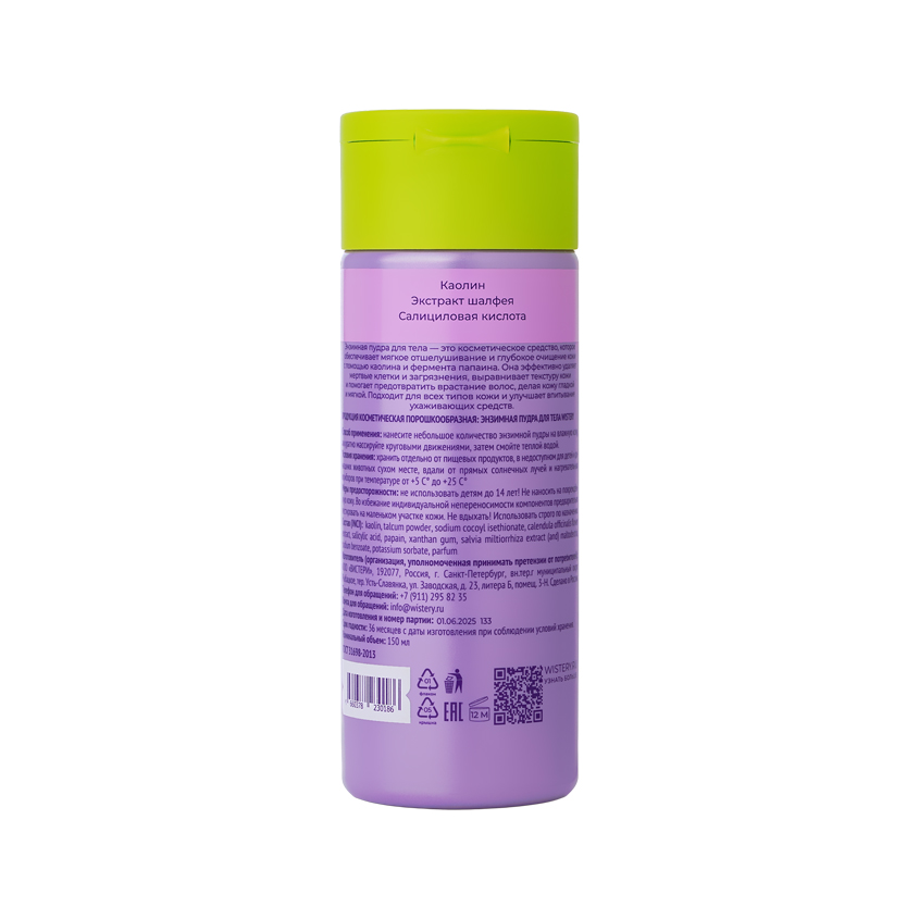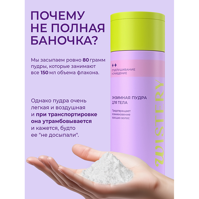 Энзимная пудра для тела — это косметическое средство, которое обеспечивает мягкое отшелушивание и глубокое очищение кожи с помощью каолина и фермента папаина. Она эффективно удаляет мертвые клетки и загрязнения, выравнивает текстуру кожи и помогает предотвратить врастание волос, делая кожу гладкой и мягкой. Подходит для всех типов кожи и улучшает впитывание ухаживающих средств.