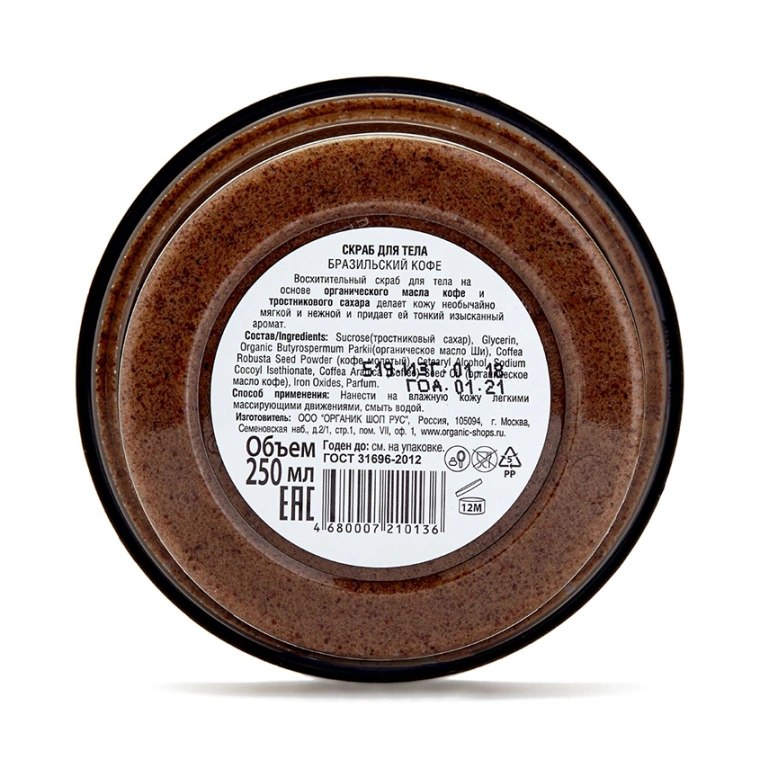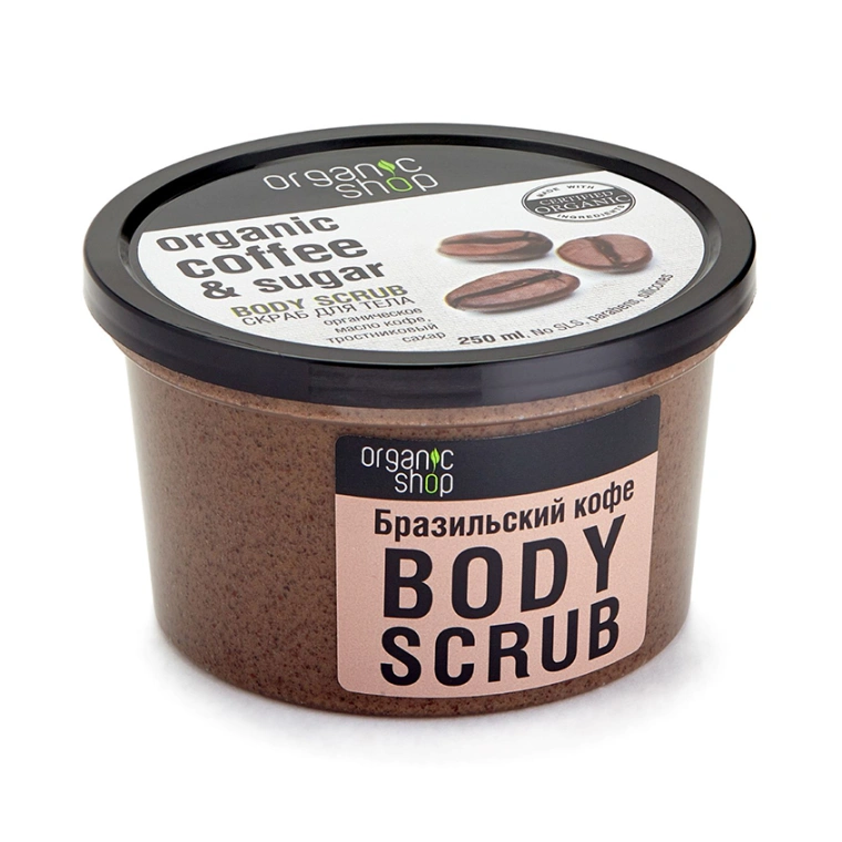 Восхитительный скраб для тела на основе органического масла кофе и тростникового сахара делает кожу необычайно мягкой и нежной, придает ей тонкий изысканный аромат.