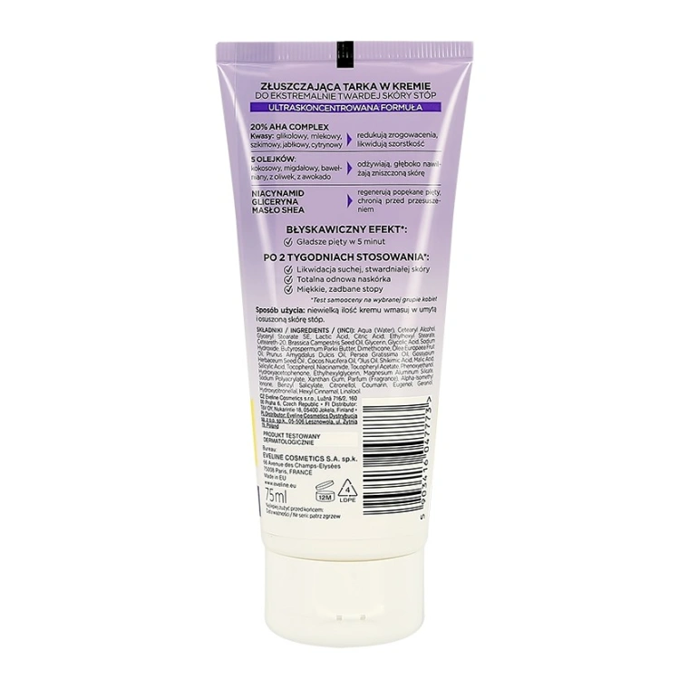 ОТШЕЛУШИВАЮЩИЙ КРЕМ ДЛЯ ОЧЕНЬ СУХОЙ ОРОГОВЕВШЕЙ КОЖИ НОГ. Активные компоненты: 20% AHA КОМПЛЕКС, 5 МАСЕЛ,