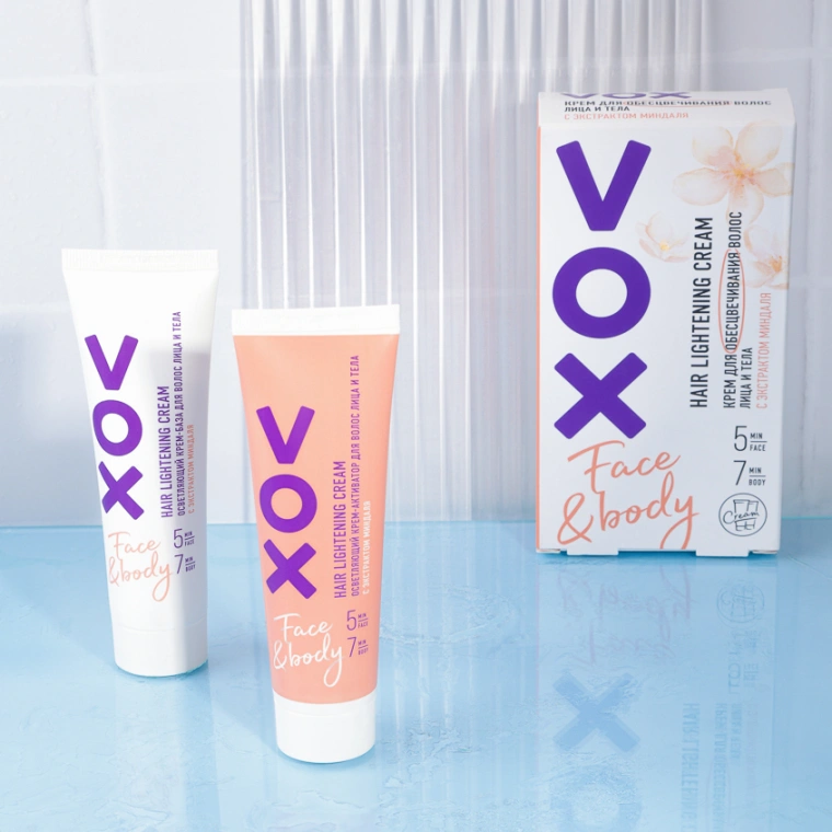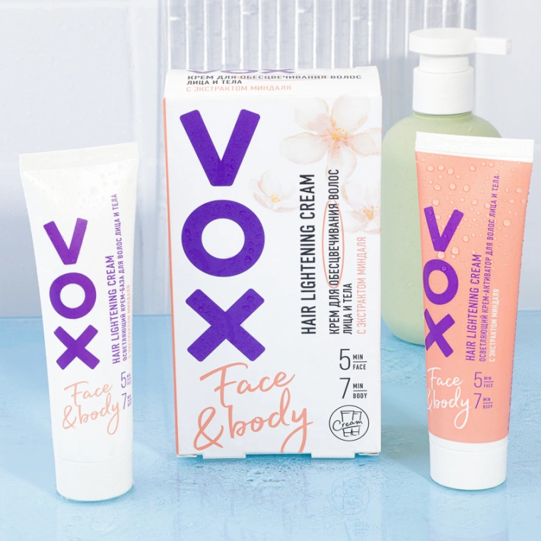 Крем для обесцвечивания волос VOX для лица и тела с приятным ароматом обогащен натуральными экстрактами ромашки и календулы, которые обладают осветляющими, восстанавливающими, смягчающими свойствами. Быстрое и мягкое обесцвечивание с длительным результатом позволяет скрыть волоски на лице и теле, которые вы не хотите удалять. Дерматологически протестировано.