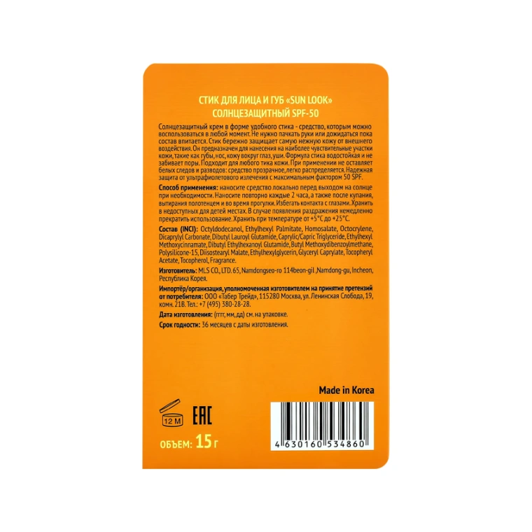Солнцезащитный крем в форме удобного стика - средство, которым можно воспользоваться в любой момент. Не нужно пачкать руки или дожидаться пока состав впитается. Стик бережно защищает самую нежную кожу от внешнего воздействия. Он предназначен для нанесения на наиболее чувствительные участки кожи, такие как губы, нос, кожу вокруг глаз, уши. Формула стика водостойкая, не содержит жира и не забивает поры. Подходит для любого тика кожи. При применении не оставляет белых следов и разводов: средство прозрачное, легко распределяется. Надежная защита от ультрафиолетового излучения с максимальным фактором 50 SPF.
