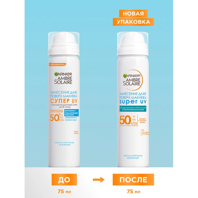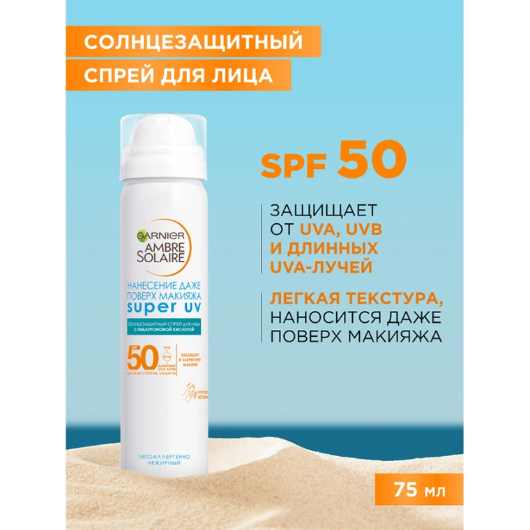 Разработанный специально для чувствительной кожи лица, солнцезащитный спрей Ambre Solaire SPF 50 с гиалуроновой кислотой надежно защищает от UVB, UVA и длинных UVA-лучей. Его невесомая и нежирная текстура вуаль не ощущается на коже, может наноситься