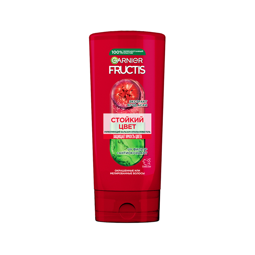 Сохранить яркость и блеск окрашенных волос — возможно! Представляем бальзам для волос Fructis Стойкий цвет, разработанный специально для защиты и питания окрашенных волос. Формула с UV*-фильтром обогащена экстрактом ягод асаи и антиоксидантом. Это эффективное сочетание для сохранения яркости цвета, интенсивного питания и зеркального блеска ваших волос!