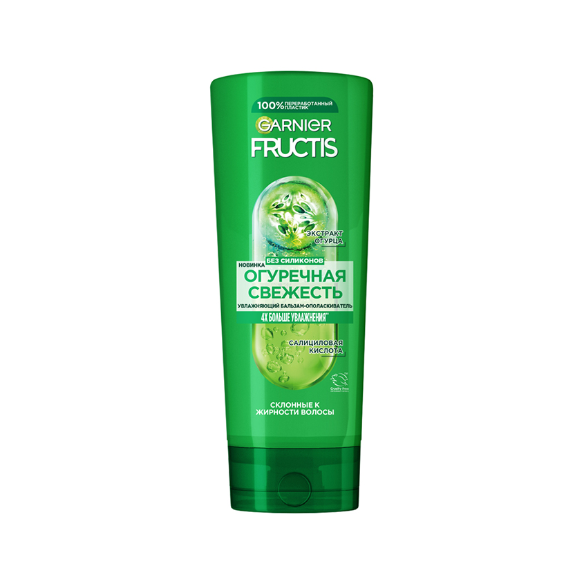 Бальзам для волос, склонных к жирности Fructis Огуречная Свежесть — верный помощник в борьбе за чистые, объемные и свежие волосы, которые сияют красотой! Наслаждайся ощущением легкости и уверенности в себе