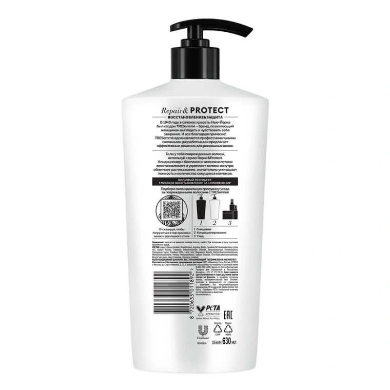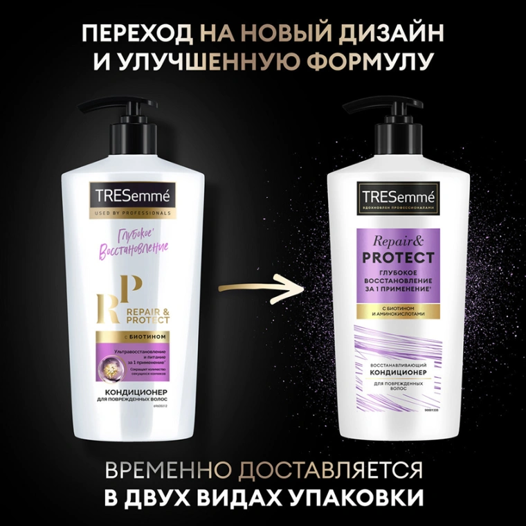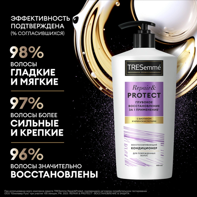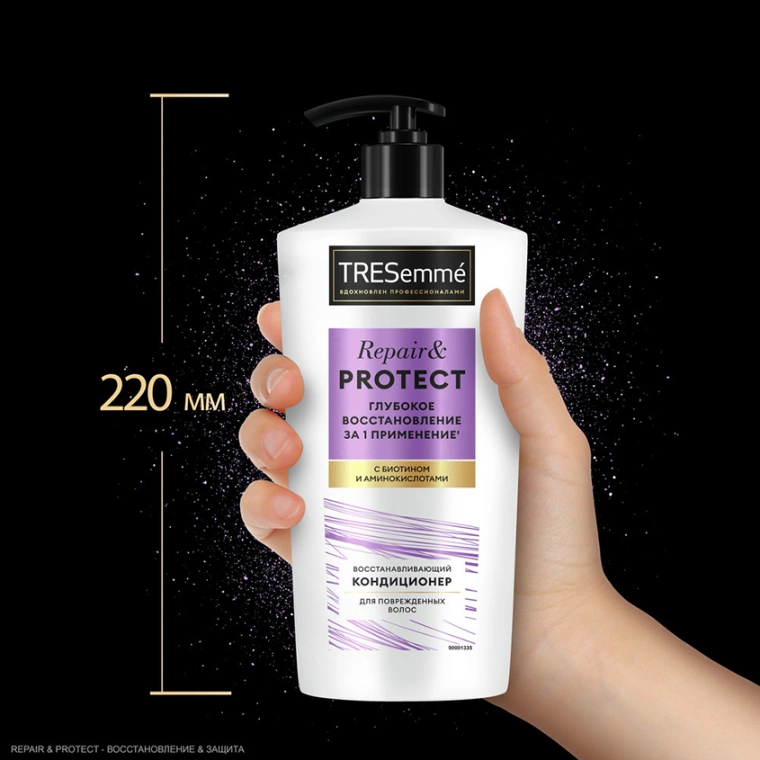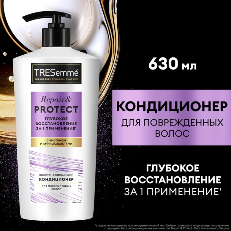 TRESemmé Repair & Protect — кондиционер для волос восстанавливающий, обогащенный биотином и аминокислотами. Бальзам для волос, вдохновленный профессиональными уходовыми средствами, оказывает скорую помощь для безжизненных локонов и дарит видимый результат: глубокое восстановление всего за одно применение’!