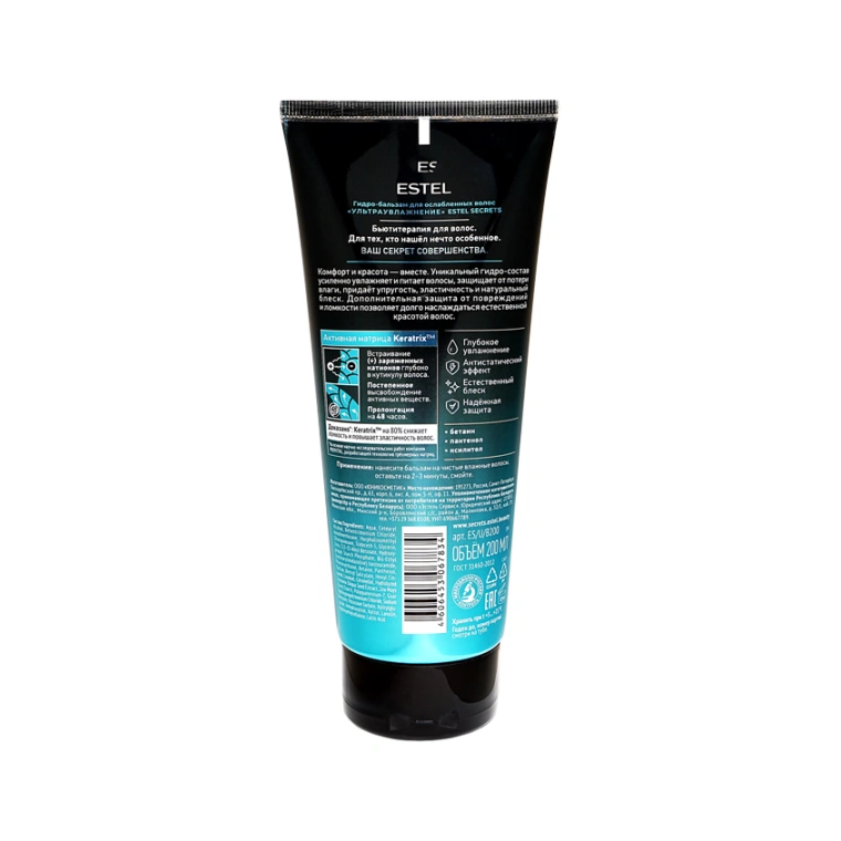 Гидро-бальзам ESTEL Secrets «Ультраувлажнение» для ослабленных волос дарит блеск и питает. Бетаин снимает раздражение, усиливает блеск и гладкость. Пантенол защищает от внешних воздействий и укрепляет волосяные фолликулы. Ксилитол предотвращает ломкость и сечение волос, облегчает расчесывание. Гидро-бальзам для волос ESTEL Secrets обеспечивает дополнительную защиту от повреждений и ломкости, позволяет долго наслаждаться естественной красотой волос.