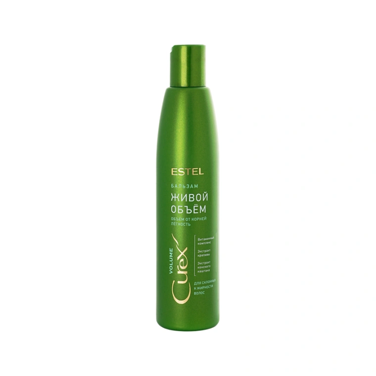 Бальзам для волос ESTEL Curex Volume «Живой объем» для склонных к жирности волос увлажняет и питает. Формула с себорегулирующими компонентами обеспечивает уход без утяжеления, создавая естественную пышность от корней до кончиков. Легкая текстура бальзама ESTEL Curex Volume не склеивает и не утяжеляет волосы, облегчает расчесывание и надолго сохраняет свежесть.