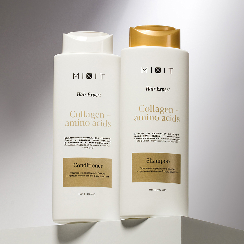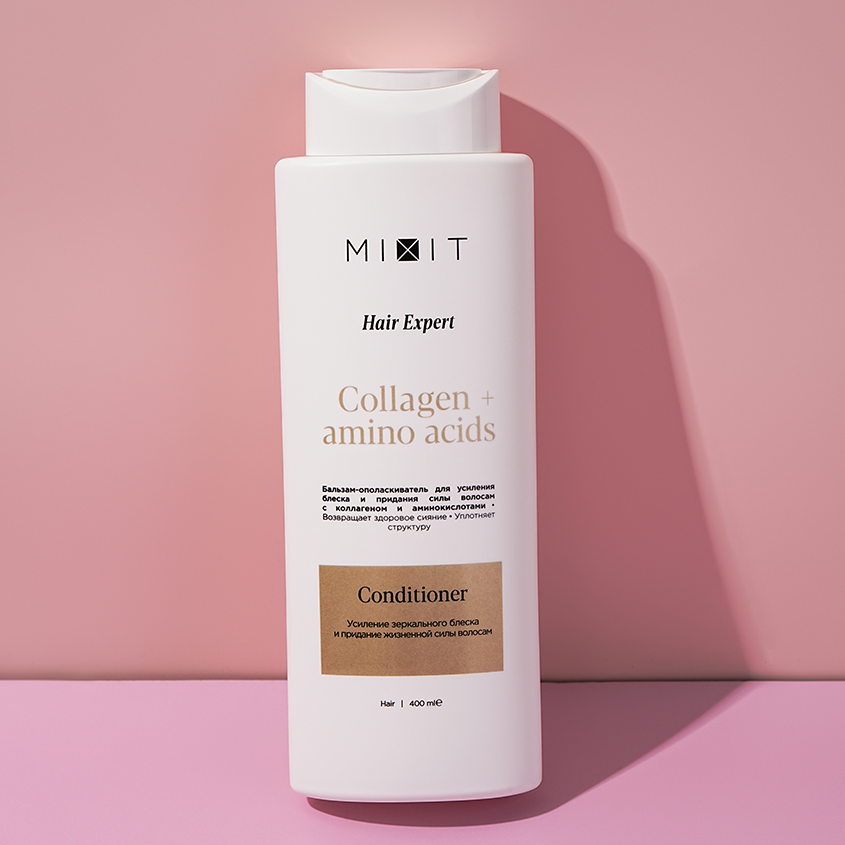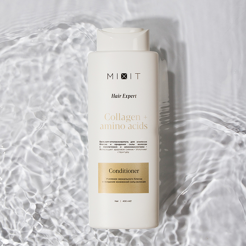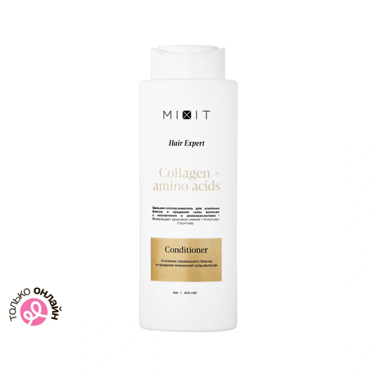 "Бальзам-ополаскиватель для усиления блеска и придания силы волосам с коллагеном и аминокислотами глубоко проникает в клеточную структуру, усиливает здоровое сияние и укрепляет изнутри. Разработанная экспертами биодоступная формула действует как антиоксидантный барьер, способствует восстановлению поврежденной структуры волос и наполняет их жизненной силой.
