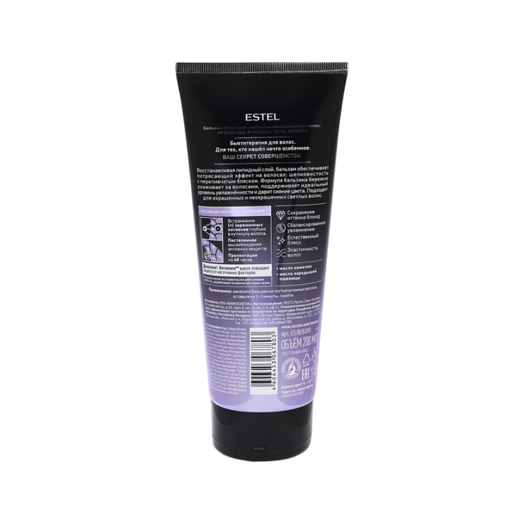 Восстанавливая липидный слой, бальзам обеспечивает потрясающий эффект на волосах: шелковистость с переливчатым блеском. Формула бальзама бережно ухаживает за волосами, поддерживает идеальный уровень увлажнённости и дарит сияние цвета. Подходит для окрашенных и неокрашенных светлых волос.