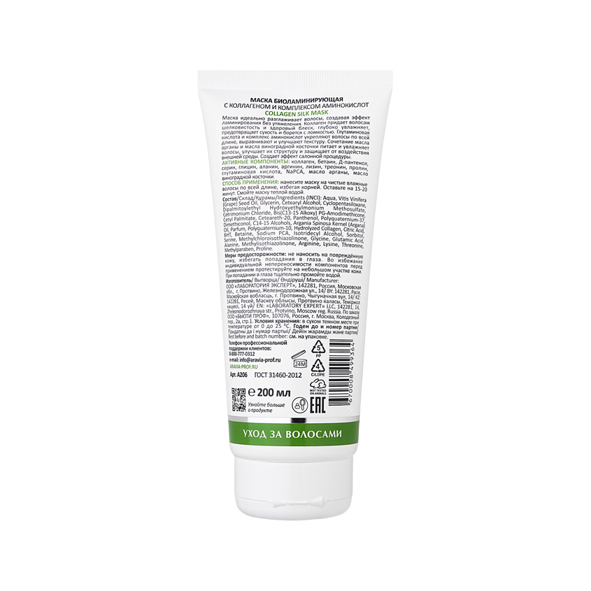 Маска идеально разглаживает волосы, создавая эффект ламинирования без утяжеления. Коллаген придает волосам шелковистость и здоровый блеск, глубоко увлажняет, предотвращает сухость и борется с ломкостью. Глутаминовая кислота и комплекс аминокислот укрепляют волосы по всей длине, выравнивают и улучшают текстуру. Сочетание масла арганы и виноградной косточки питает волосы по всей длине, улучшает их структуру и защищает от воздействия внешней среды. Создает эффект салонной процедуры.