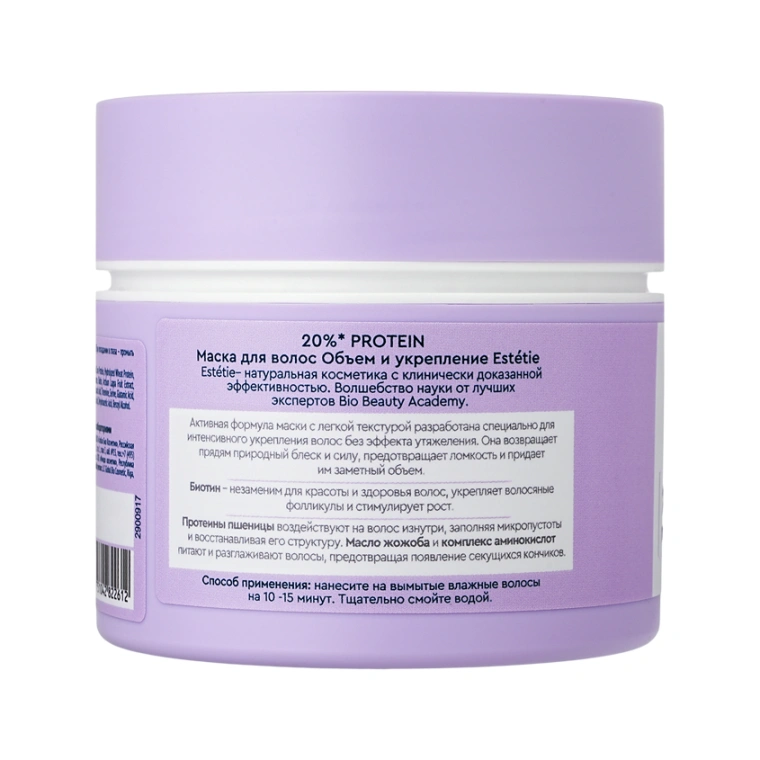 Активная формула маски с легкой текстурой разработана специально для интенсивного укрепления волос без эффекта утяжеления. Она возвращает прядям природный блеск и силу, предотвращает ломкость и придает им заметный объем. Биотин – незаменим для красоты и здоровья волос, укрепляет волосяные фолликулы и стимулирует рост. Протеины пшеницы воздействуют на волос изнутри, заполняя микропустоты и восстанавливая его структуру. Масло жожоба и комплекс аминокислот питают и разглаживают волосы, предотвращая появление секущихся кончиков.