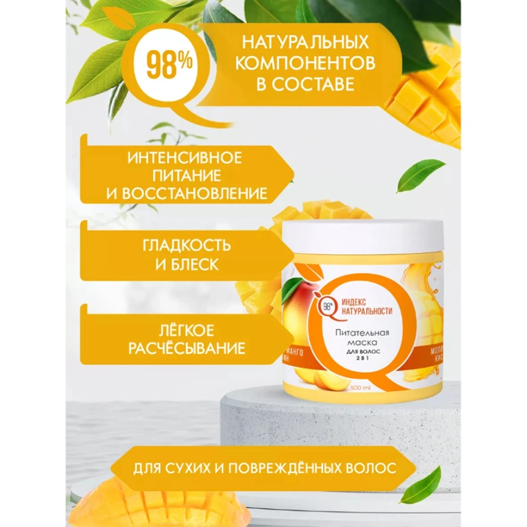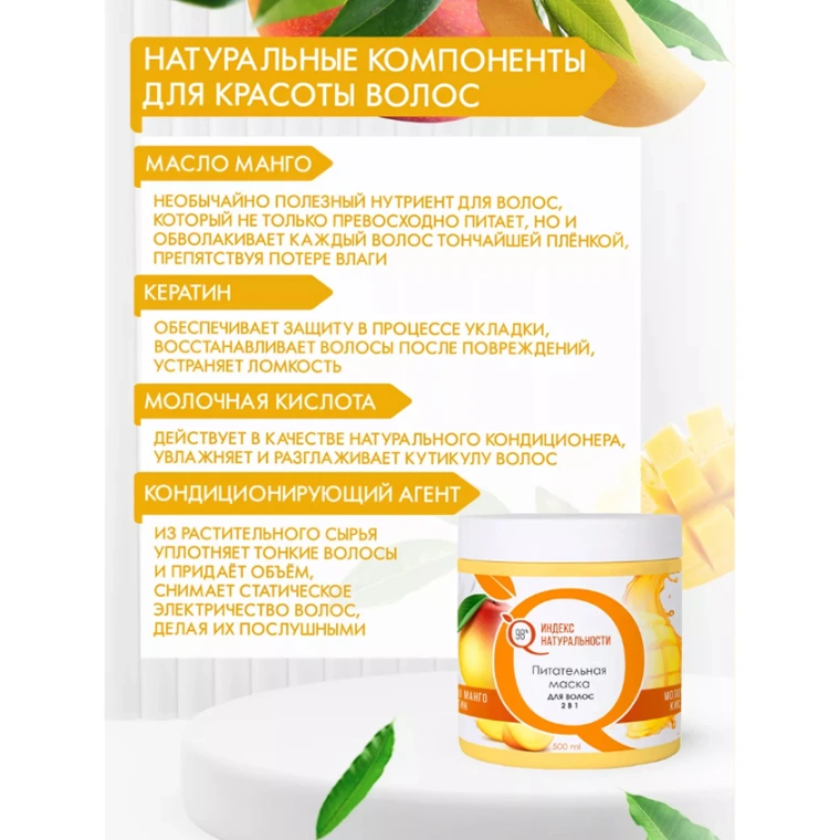 Сочетая в себе роскошные натуральные элементы, такие как масло ши и манго баттер, наша маска глубоко увлажняет сухие и ломкие пряди, при этом целенаправленно работая над укреплением их структуры.