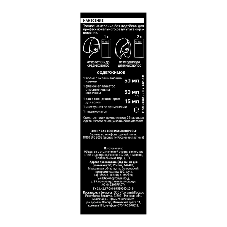 ПРЕДОСТОРОЖНОСТИ» на обороте инструкции. Проведите тест на аллергическую реакцию в любом случае (см. оборотную сторону), даже если Вы уже пользовались этой или другими красками для волос. Наносите приготовленную смесь сразу после смешивания.
