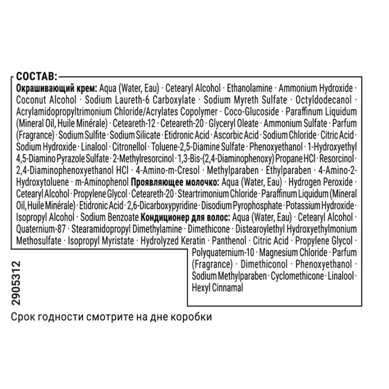 ВНИМАНИЕ: Цвет окрашивающей смеси некоторых оттенков меняется во время нанесения. Это не влияет на результат окрашивания.