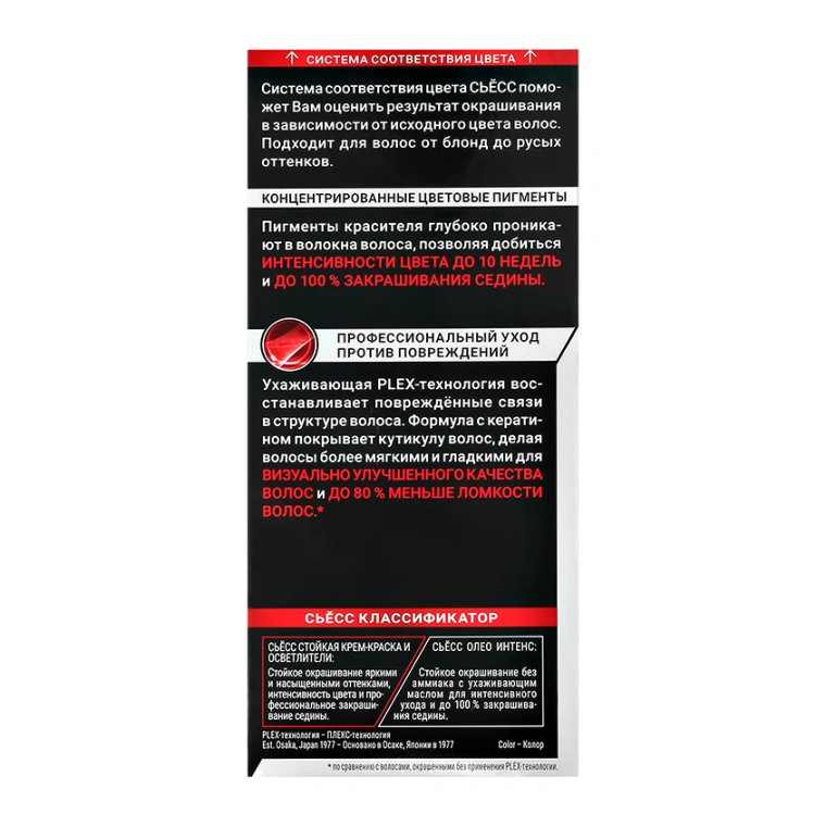 Бренд Сьёсс воплощает профессиональную экспертизу, следуя последним трендам и используя новейшие технологии при создании средств для ухода, окрашивания и укладки волос. Формулы Сьёсс разработаны и протестированы профессиональными парикмахерами-стилистами, чтобы ваши волосы выглядели как после салона.