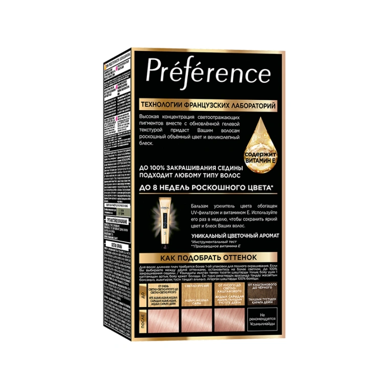 Краска для волос Л'Ореаль Париж "Преферанс" - премиальное качество окрашивания! Она создана ведущими экспертами лабораторий Л'Ореаль Париж в сотрудничестве с профессиональным колористом Кристофом Робином. В результате исследований был разработан уникальный состав краски, основанный на более объемных красящих пигментах. Стойкая краска оттенка 9.23, Розовая Платина, Очень Светло-Русый Розово-Перламутровый способна дольше удерживаться в структуре волос, создавая неповторимый яркий цвет, устойчивый к вымыванию и возникновению тусклости. Комплекс Экстраблеск добавит блеска насыщенному цвету волос. Красивые шелковые волосы с насыщенным цветом на протяжении 8 недель после окрашивания!