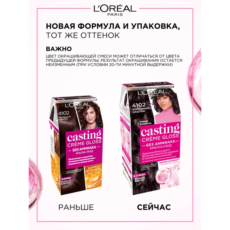 Сияй ярче всех с новым блестящим оттенком краски-ухода без аммиака Casting Crème Gloss от L'Oreal Paris, которая подходит для первого окрашивания!