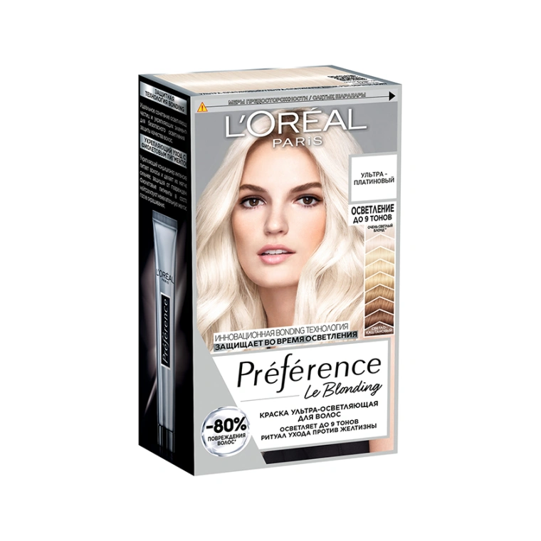 Откройте для себя инновационную осветляющую технологию от Préférence. Впервые, формула, которая способна осветлить волосы до 9 оттенков вплоть до чисто платинового, даже темно-каштановый исходных оттенок.