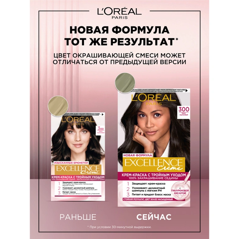 Стойкая крем-краска для волос Excellence Creme 300, Темно-каштановый – 100% закрашивание седины уходом и тройной уход за кожей головы и волосами: