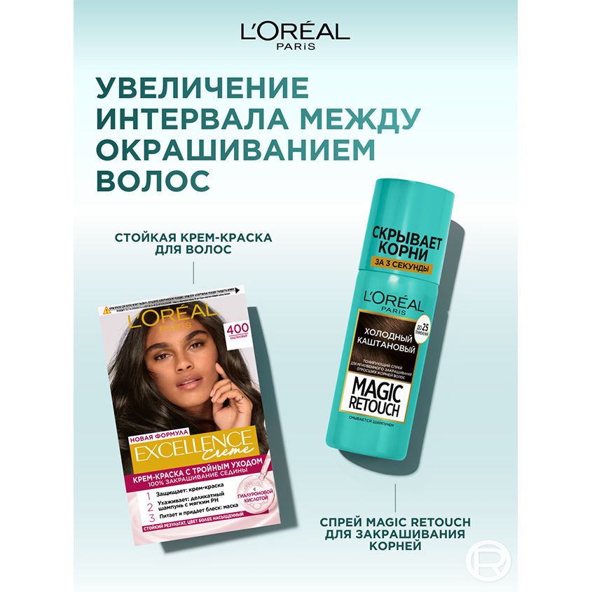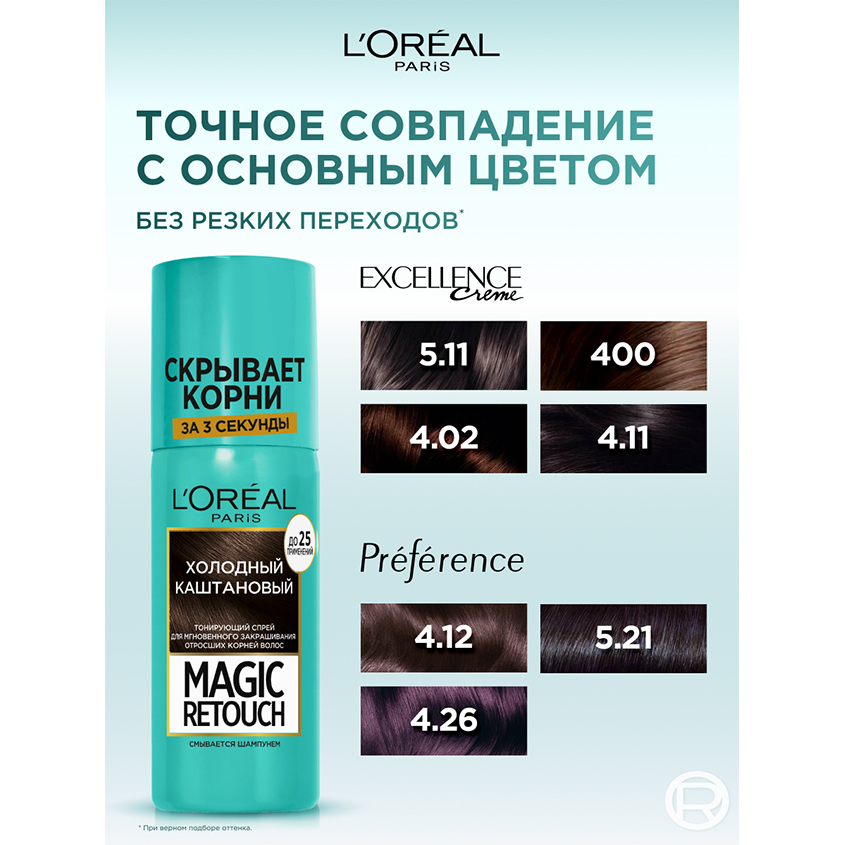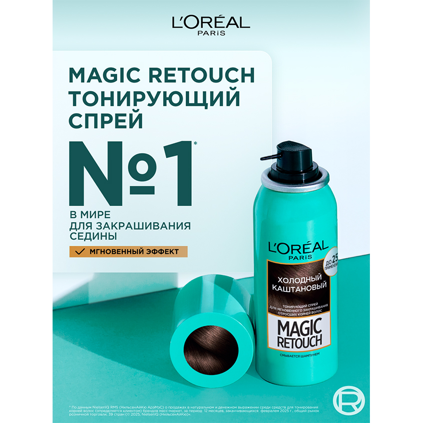 Тонирующий спрей для мгновенного закрашивания отросших корней Magic Retouch (Мэджик Ретач) от L'Oreal Paris (Л'Ореаль Париж). Мгновенный эффект закрашивания седины. Совершенное попадание в цвет. Мгновенное высыхание. Результат держится до следующего мытья головы. Подходит для любых окрашенных волос. Хватает до 25 применений.