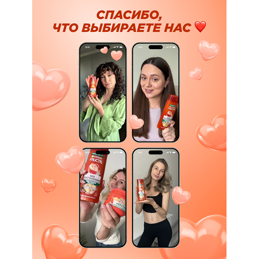Для оптимального эффекта используйте всю линейку Fructis SOS Восстановление: