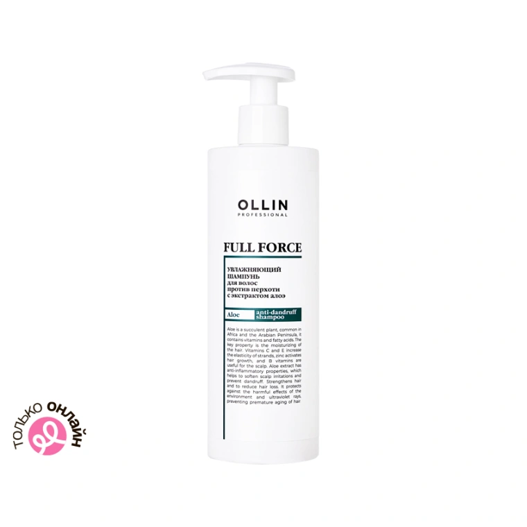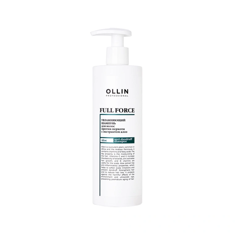 Профессиональный увлажняющий шампунь FULL FORCE от OLLIN предназначен для бережного очищения и против перхоти. Благодаря сбалансированной формуле средство бережно очищает волосы и устраняет причину появления перхоти, не вызывая раздражения и зуд, не пересушивая кожу. Эффективный шампунь против перхоти насыщает влагой, укрепляет волосы от корней до кончиков, устраняет ощущение сухости и дискомфорта. Натуральные компоненты способствуют нормализации гидролипидного баланса, поддерживают здоровье кожи головы, предотвращают раздражение. Благодаря своей структуре шампунь равномерно распределяется, образует лёгкую пену и легко смывается, не оставляя налёта и не утяжеляя пряди. Ollin шампунь с алоэ подходит для ежедневного применения. Шампунь Ollin Full Force подходит для всех типов волос, включая сухие и поврежденные, делает ваши волосы мягкими, послушными и полными блеска.