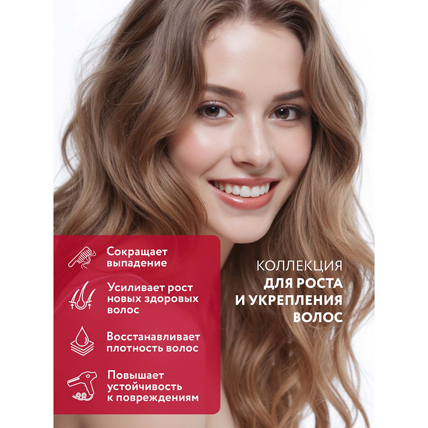 КОЛЛЕКЦИЯ ДЛЯ РОСТА И УКРЕПЛЕНИЯ ВОЛОС содержит высокоэффективные формулы, которые сокращают выпадение и усиливают рост, повышают плотность и устойчивость волос к повреждениям.