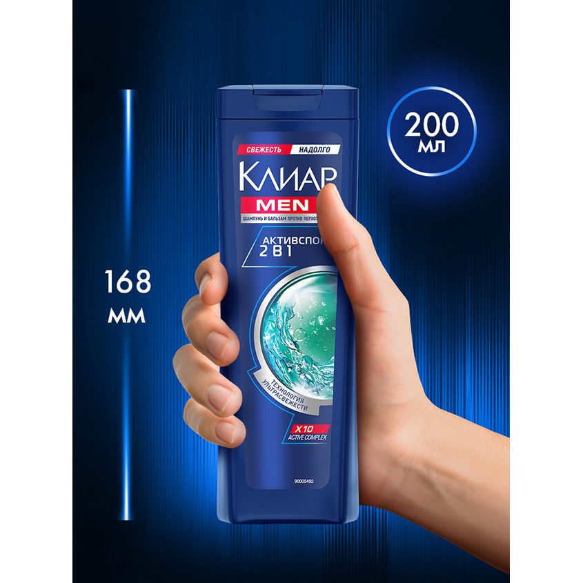 Очищающий шампунь и кондиционер против перхоти для мужчин Клиар Men Активспорт 2в1 обеспечивает антибактериальный эффект, борется с причинами появления перхоти, очищает кожу головы и активирует ее защитные функции. Его цитрусово-травяной аромат с ледяным ментолом освежает, дарит ощущение свежести и прохлады надолго! Уходовый мужской шампунь для борьбы с перхотью подходит для ежедневного применения, для любого типа волос и кожи головы. Объем флакона на 200 мл удобно взять с собой и дорогу или поездку.
