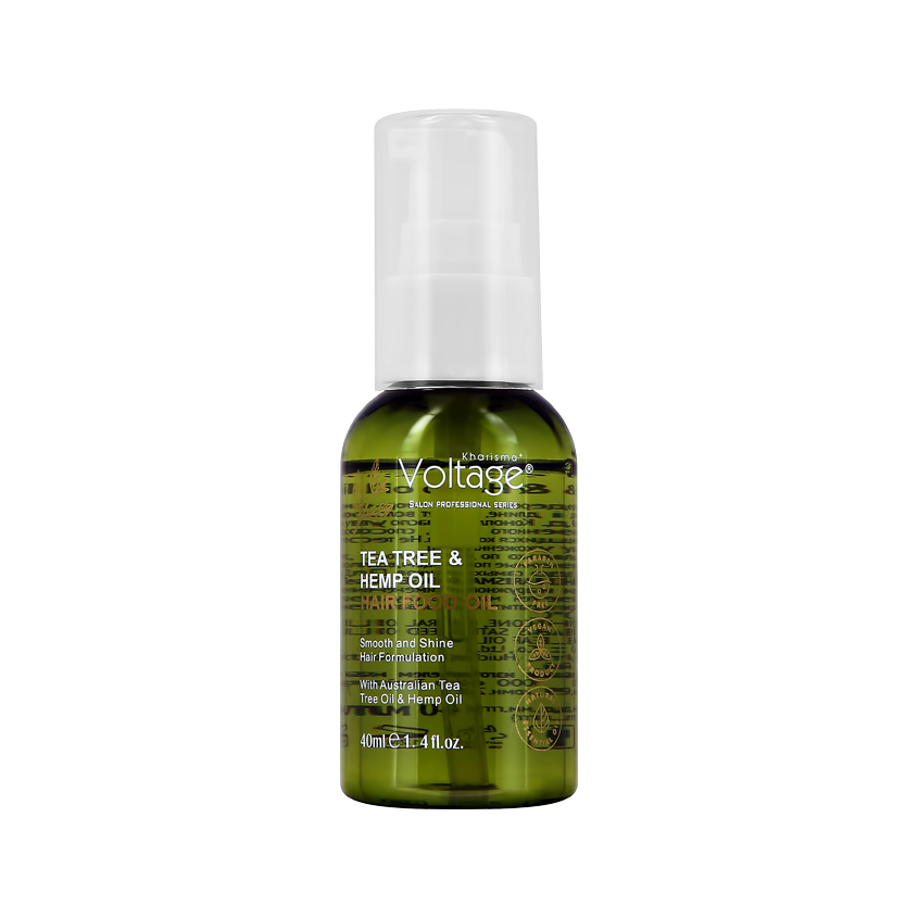 Масло для волос KHARISMA VOLTAGE Tea Tree &Hemp Oil придает волосам гладкость и ухоженный вид. Эфирное масло австралийского чайного дерева помогает нормализовать себорегуляцию, укрепить и восстановить волосы по всей длине, придает волосам длительную свежесть, мягкость, шелковистость и ухоженный вид. Конопляное масло увлажняет и делает волосы более гладкими, не теряя их естественного блеска, способствует восстановлению поврежденных волос и защищает от секущихся кончиков. Не тестируется на животных.