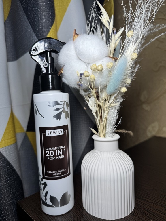 Многофункциональный несмываемый крем-спрей для волос заменяет сразу 20 средств по уходу за волосами и обладает парфюмированным древесно-пряным ароматом. Крем-спрей для волос разглаживает, смягчает, увлажняет, питает, восстанавливает поврежденные волосы, обеспечивает стойкую термозащиту, придает здоровое сияние и блеск, облегчает расчесывание, способствует быстрой укладке, продляет фиксацию, устраняет пушистость и непослушность, убирает статику волос, предотвращает сечение по всей длине, придает гибкость и эластичность жестким волосам, увеличивает прочность волос, заполняет пористые волосы кератином, придает волосам текстуру и объем, защищает от неблагоприятных воздействий окружающей среды, сохраняет цвет окрашенных волос, устраняет эффект липкости волос.