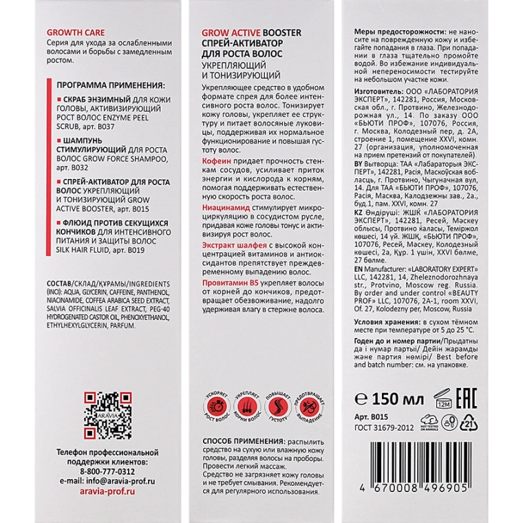 Концентрированная сыворотка в удобном формате спрея для улучшения роста волос. Средство способствует продлению активного цикла роста, нормализует фазы жизни волос, помогая увеличить их густоту и длину. Кофеин стимулирует приток энергии и «пробуждает» спящие волосяные фолликулы, увеличивая количество молодых волос. Ниацинамид улучшает микроциркуляцию, обеспечивает волосяные луковицы кислородом, таким образом увеличивая естественную скорость роста новых, здоровых волос. Фитоэкстракт шалфея, богатый витаминами и антиоксидантами, укрепляет корни волос, препятствуя их старению и преждевременному выпадению. Спрей помогает достичь максимальной генетически заложенной длины, возвращая волосам природную силу.