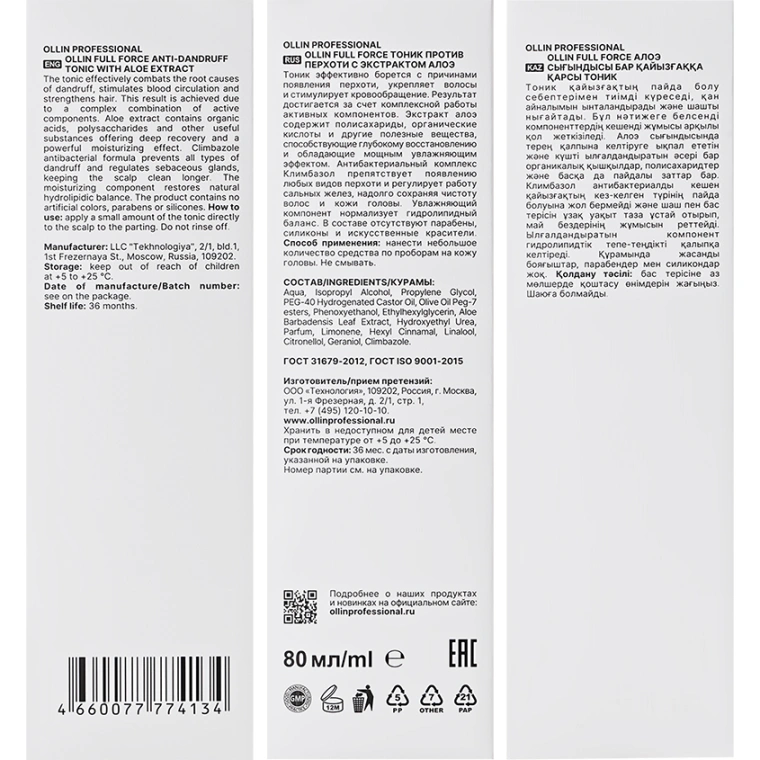 Профессиональный тоник против перхоти OLLIN FULL FORCE с экстрактом алоэ борется с причинами появления перхоти, укрепляет волосы и стимулирует кровообращение. Идеален для всех типов волос, особенно при склонности к шелушению и зуду. Состав разработан для глубокого очищения, нормализации выработки себума и укрепления волосяных фолликулов. Экстракт алоэ активно увлажняет, ускоряет обновление клеток и повышает естественную защиту кожи головы. Насыщенная формула средства против перхоти помогает снять раздражение и уменьшить проявления сухости. Климбазол — компонент с антимикробным действием — эффективно борется с грибками, вызывающими перхоть, и препятствует их повторному появлению. Масло оливы в мягкой форме ухаживает за кожей, способствует восстановлению и придаёт волосам ухоженный вид. Использование тоника от перхоти стимулирует микроциркуляцию, укрепляет корни и активизирует рост. В результате кожа головы становится чище и здоровее, волосы — крепче, гуще и блестят натуральным сиянием.