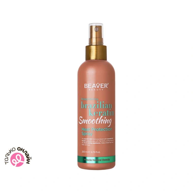 Спрей для волос BEAVER BRAZILIAN KERATIN термозащитный с кератином для эластичности волос подойдет для тех, кто использует фен, утюжок или плойку. Легкая невесомая текстура не утяжеляет и не склеивает. Спрей подходит для всех типов волос, особенно для сухих, поврежденных и ломких.