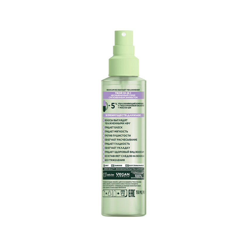 Сухие волосы нарушают твои планы? Выглядят тусклыми и неухоженными? Это больше не повод для беспокойства! Представляем несмываемый многофункциональный спрей для волос Fructis 10в1 с 5% увлажняющим комплексом с маслом ши и гиалуроновой кислотой. Формула спрея обеспечивает комплексный уход и дарит 10 преимуществ для твоих волос: